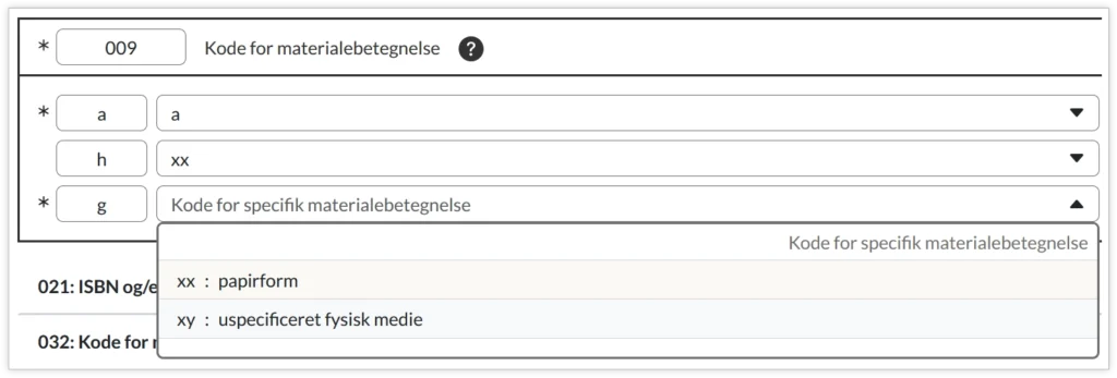 - Ret felt 009 *g til *h og tilføj et nyt delfelt *g med værdien xy