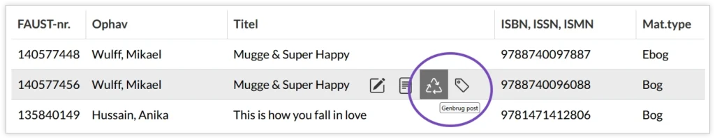 Der er nu dannet en kopi af posten, men med et nyt faustnummer, og hvor dit bibliotek står som ejer i felt 996.
