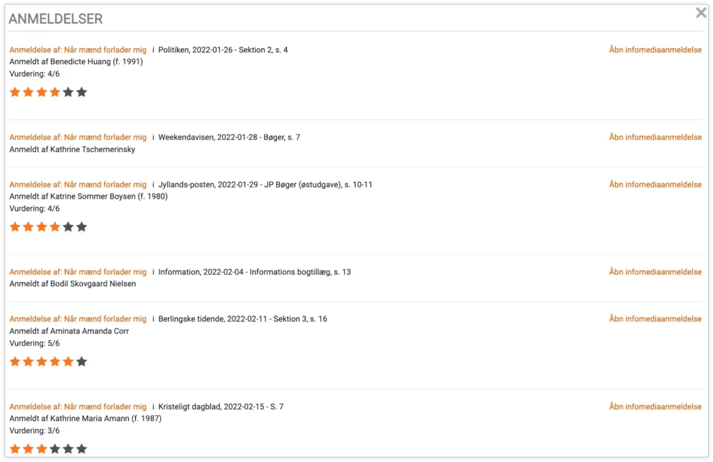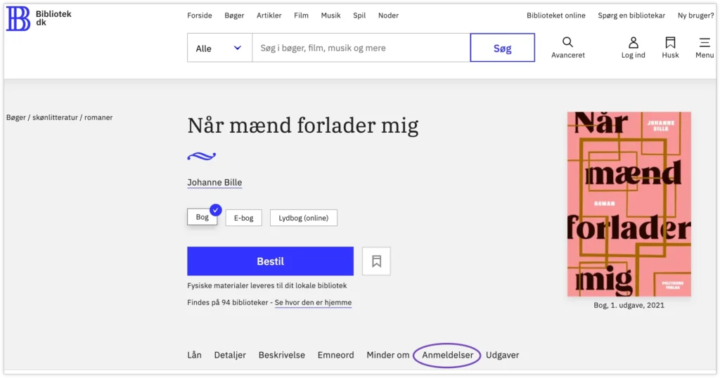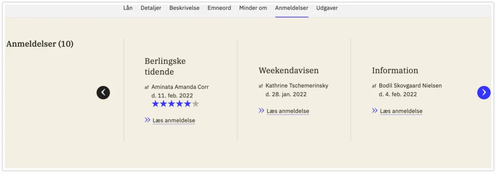 I Bibliotek.dk findes anmeldelser under fanen Anmeldelser.