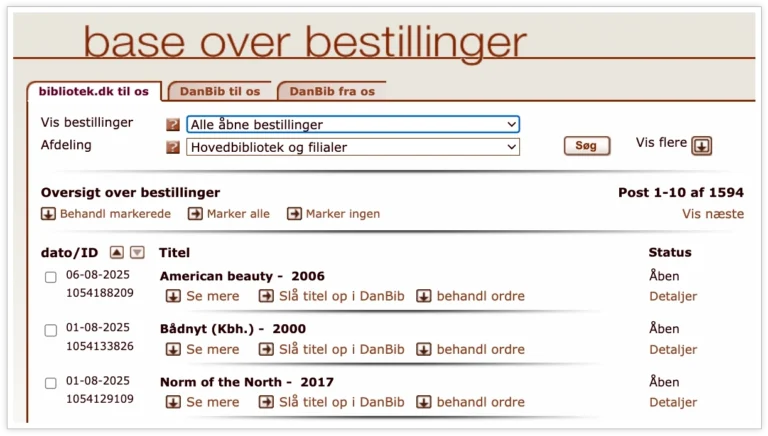 - Bibliotek.dk-bestillinger der ikke er blevet automatiserede.